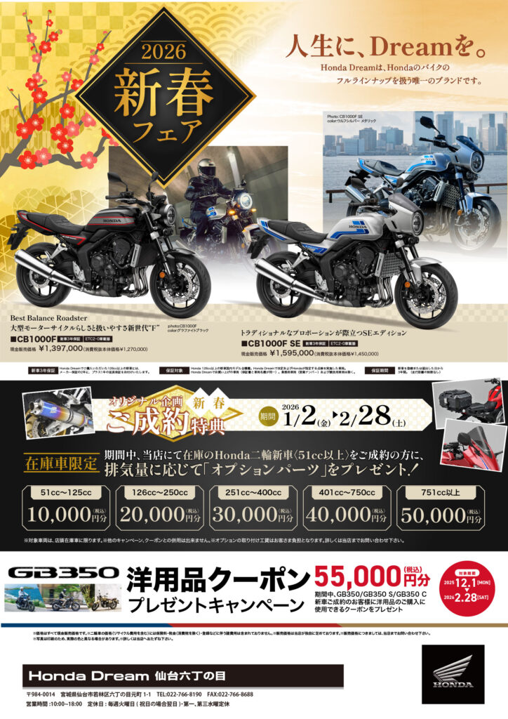 ホンダドリーム仙台六丁の目にてHonda二輪新車をご成約の方に、
